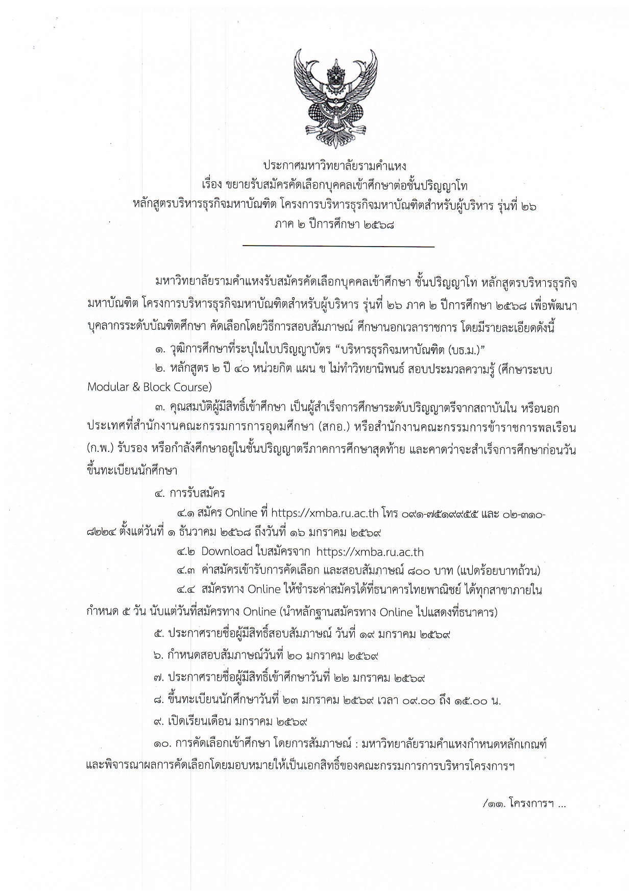 ประกาศรับสมัคร X-MBA รุ่นที่ 26 (ช่วงที่ 2)