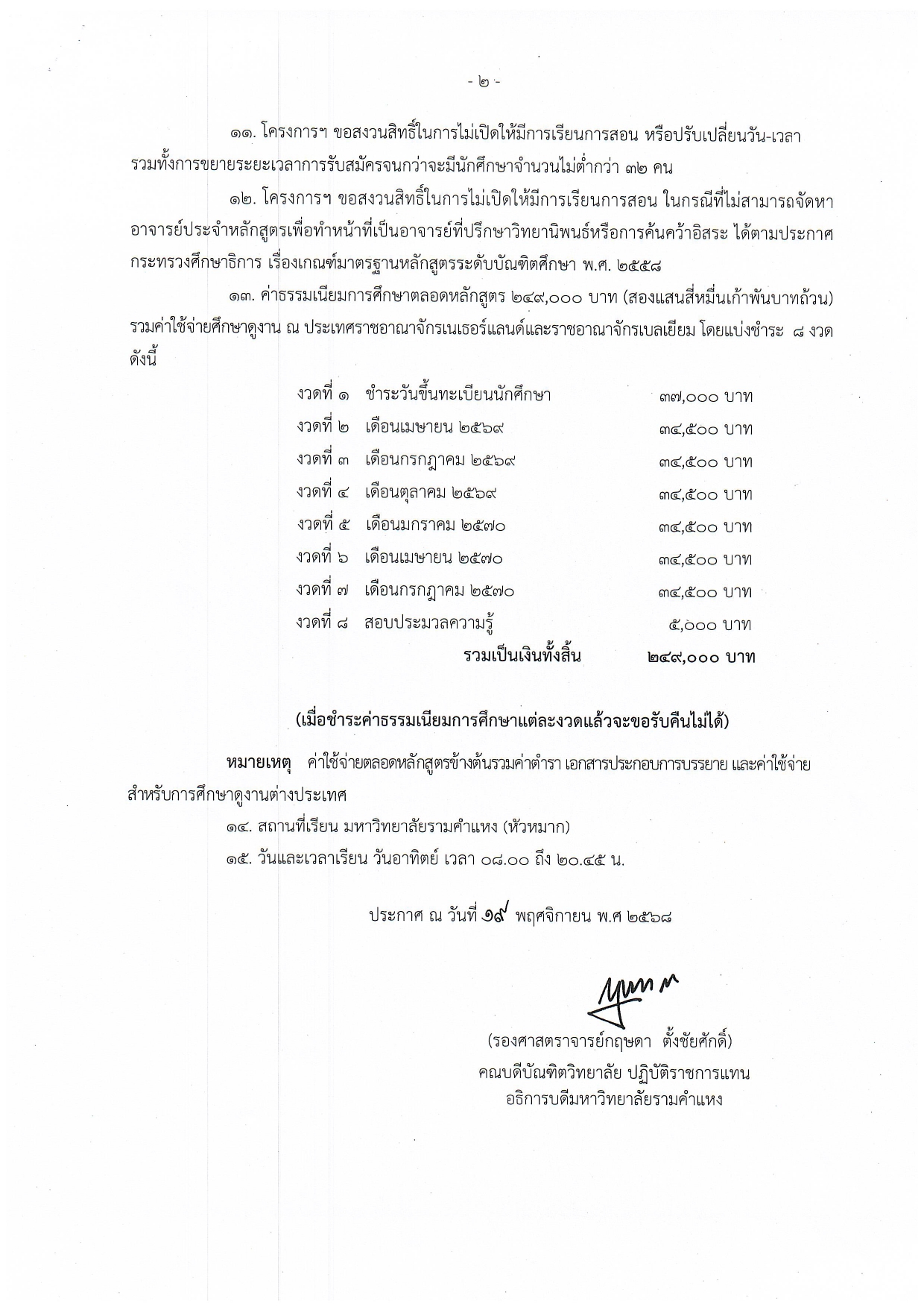 กำหนดการเซ็นชื่อเข้าเรียน
